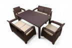 Кресла и столик выполнены в стильном дизайне с имитацией плетения под искусственный ротанг. В отличие от плетеной мебели, имитация ротанга не расплетается и не вытягивается, надолго сохраняя привлекательный внешний вид.