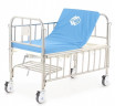 Ложе кровати: 177,5 х 75 см из высокопрочных стальных труб с ударопрочным полимерно-порошковым покрытием, высота от пола 54 см. Спинки торцевые: единая сварная конструкция с ножками, быстросборные, из нержавеющей стали, карман для карточки пациента на ножной спинке.
