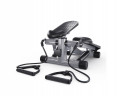 Модель DFC SC-S5901 представляет собой полноценный степпер с удобной стойкой и поручнями, который идеально подойдет для домашних тренировок. Благодаря встроенным колесам, вы без труда сможете перемещать его по квартире. Степпер оснащен гидравлической системой нагружения с 12 уровнями сопротивления, что позволяет индивидуально настроить нагрузку для каждой ноги. Измерение пульса осуществляется с помощью сенсорных датчиков на поручнях. На монохромном LCD дисплее отображаются основные показатели тренировки: время, расстояние, пульс, возраст, обороты в минуту, уровень жира (bodyfat) и восстановление пульса. Встроенная спортивная бутылка с держателем обеспечит вас водой во время тренировки. Максимальный вес пользователя составляет 120 килограмм, а размер степпера в рабочем состоянии - 117 x 80 x 147 сантиметров. Для удобства хранения и транспортировки предусмотрены транспортировочные ролики. Особенности модели : Независимая настройка нагрузки для каждой ноги; 12 уровней сопротивления; Измерение пульса с помощью датчиков на поручнях;