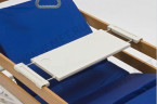 Тумбочка прикроватная на колёсах BLZ 016 с дополнительным выдвижным столиком и скруглённым белым фасадом. Передвижная прикроватная тумбочка на самоориентирующихся двойных роликах, два из которых которых оснащены тормозным устройством. Cнабжена отделением с дверцей и полкой внутри, глубоким выдвижным ящиком и дополнительным выдвижным столиком, убирающимся под топ. Столешница с четырехсторонней выпрессованной отбортовкой. Широкая металлическая ручка сбоку позволяет легко перемещать тумбочку или удобно подвешивать за неё различные аксессуары.